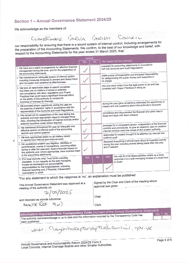 AGAR Annual governance statement 2023-24